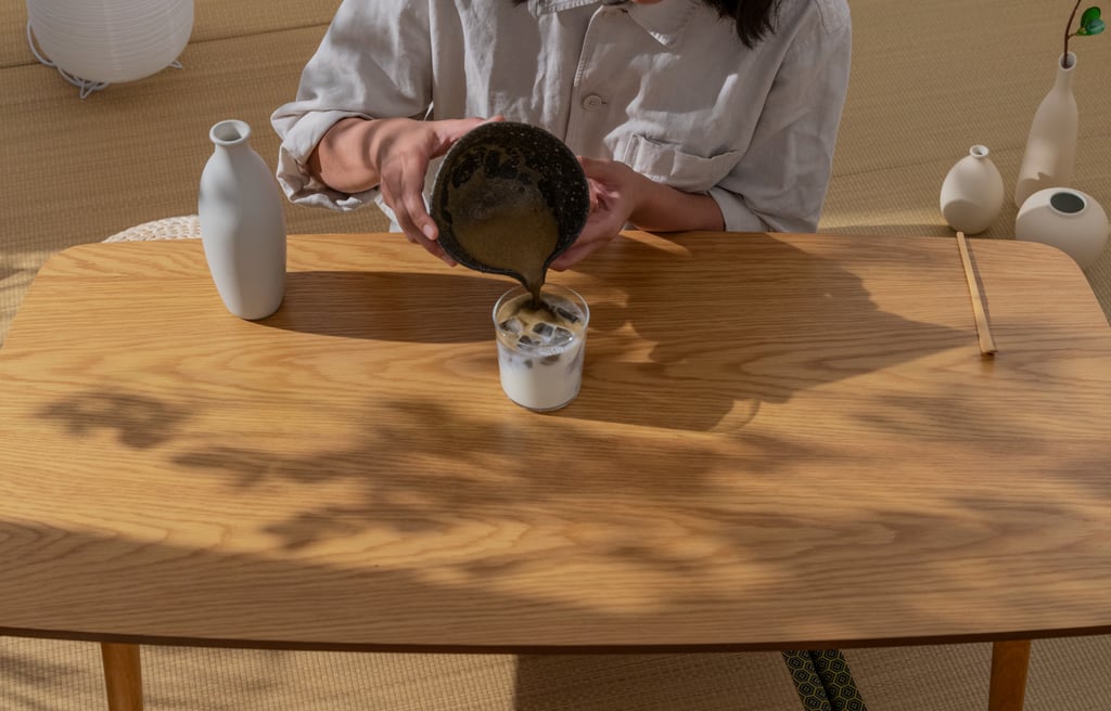 Whisk hojicha powder until clumps are removed and microfoam is created (approximately 1 minute of whisking).