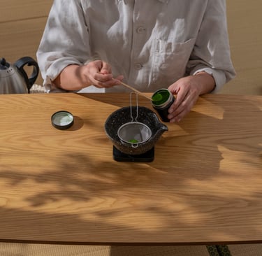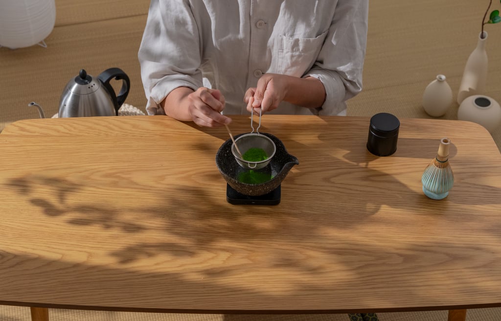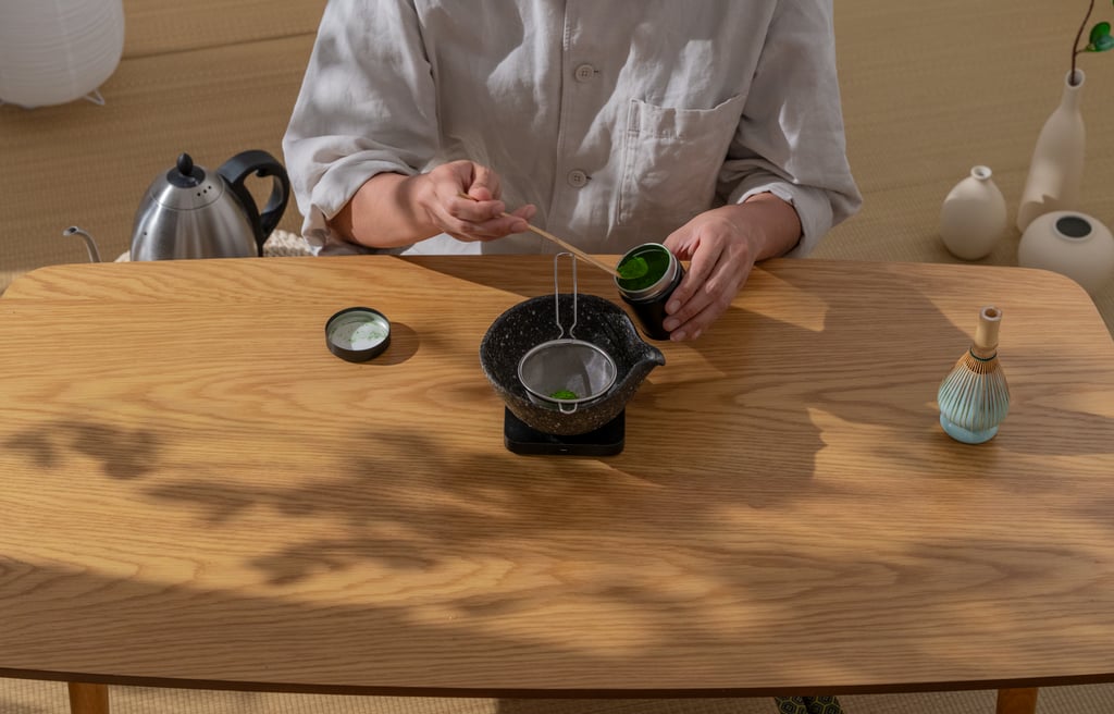 Dose 4g of matcha into sifter over vessel of choice.